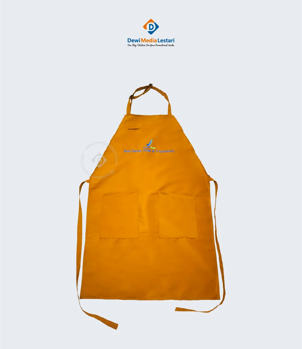 Sesuai dengan namanya, apron taslan ini terbuat dari kain taslan yang bersifat waterproof sehingga terlindungi dari percikan benda-benda cair.